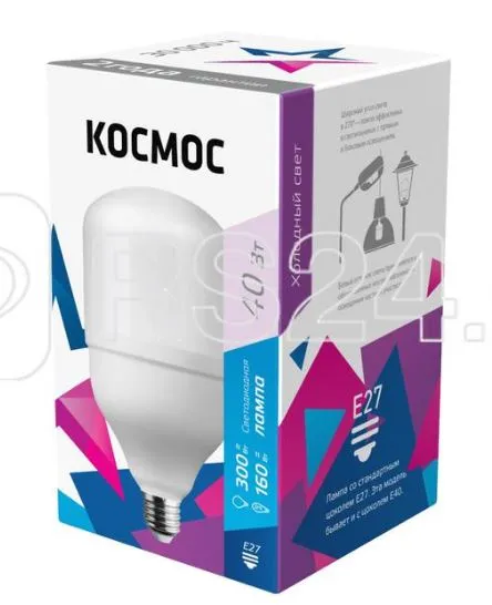 Светодиодная лампа КОСМОС HWLED 40W 220V E27 6500K переходник в комплекте на Е40