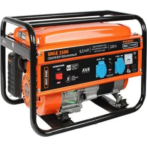 Бензиновый генератор PATRIOT Max Power SRGE 2500 474103130, благодаря верхнему расположению клапанов двигателя, обладает низким уровнем шума, что обеспечивает комфорт при его эксплуатации. Данная модель используется для автономного, а также аварийного энергоснабжения однофазных устройств и оборудования суммарной мощностью до 2000 Вт. В конструкции электростанции предусмотрен выход на 12 В, который дает возможность экстренной подзарядки автомобильных АКБ. Увеличенный топливный бак, в совокупности с низким расходом горючего, позволяет установке работать до 8 часов без дозаправки.