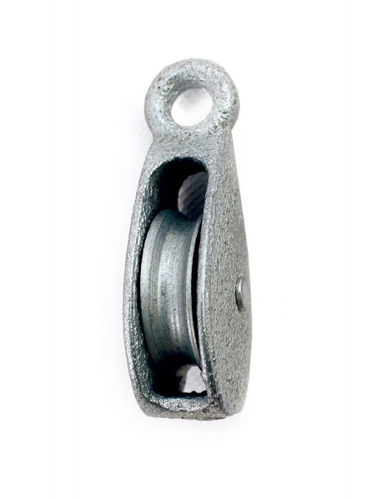 Роликовый такелажный блок одинарный для троса, каната с металлическим шкивом. Блок с проушиной используется для изменения направления движения каната, троса и увеличения силы в грузоподъемном механизме, не для подъёма грузов